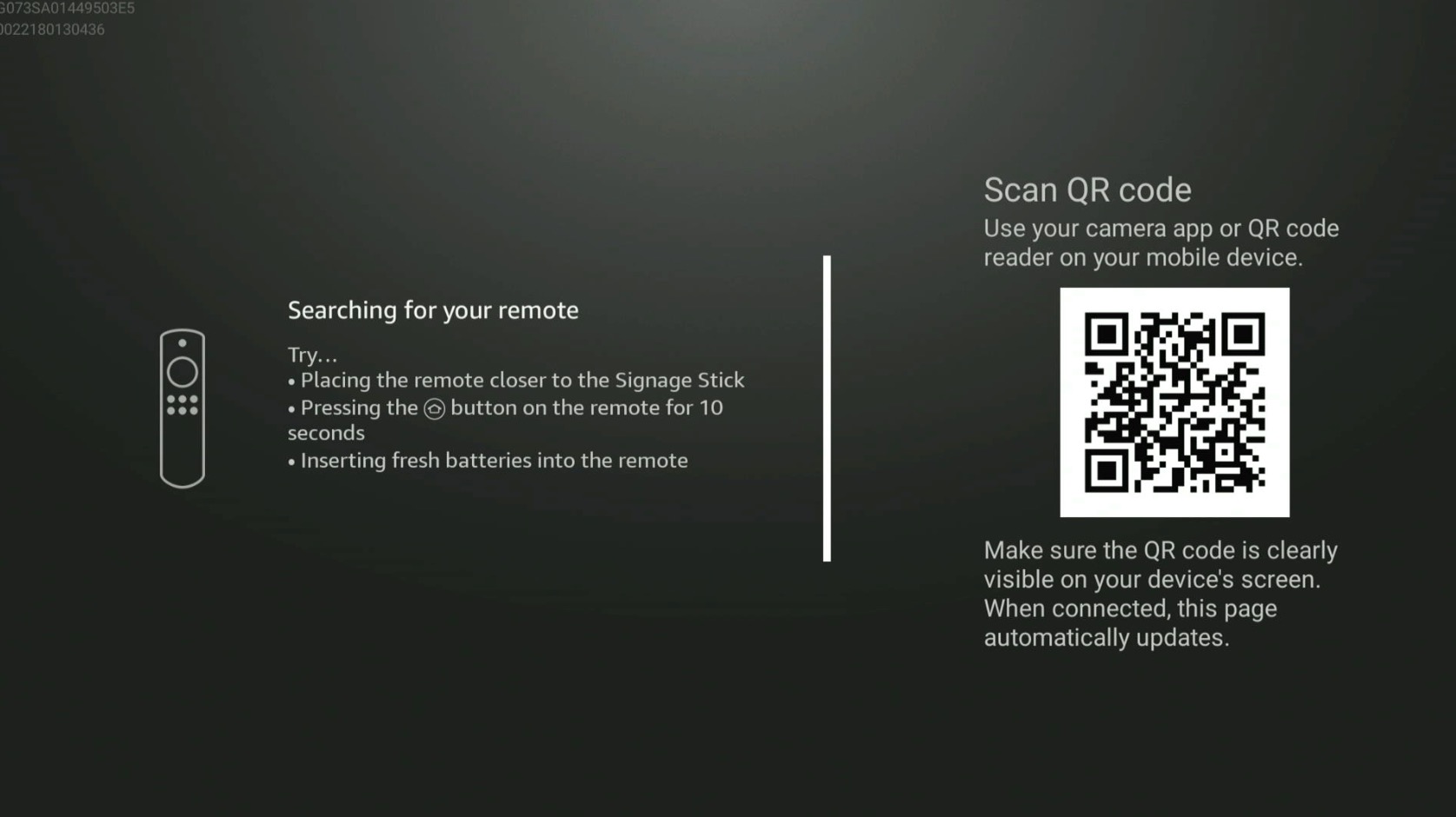 Amazon Signage pairing screen.