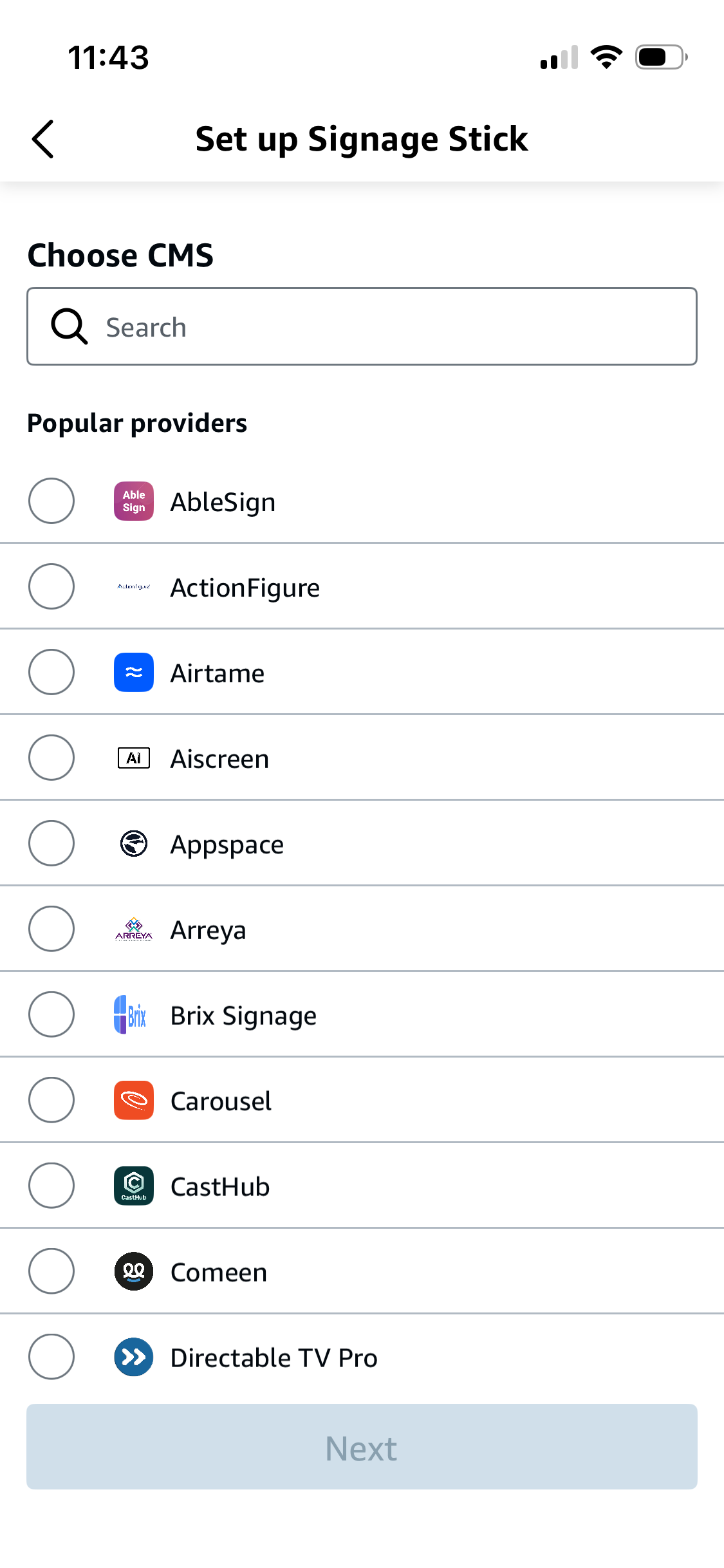 Method 2: Set up via the Amazon Signage mobile app.
