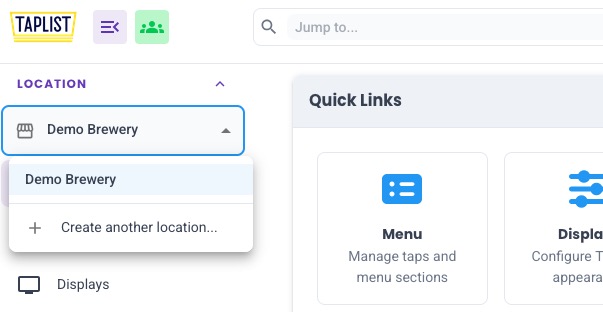- Click on your location name in the upper left corner of the Taplist dashboard.
